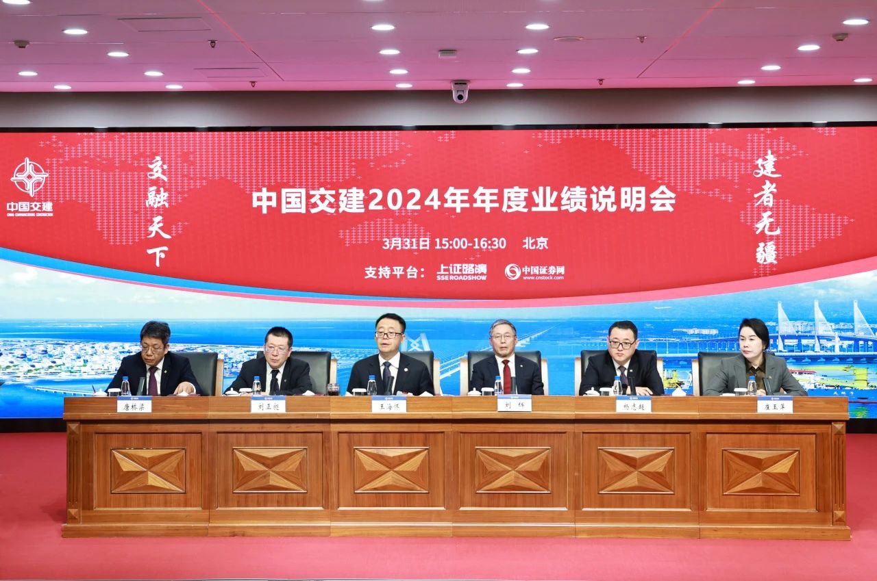 3月31日,中国交建在中交大厦召开2024年年度业绩说明会。公司执行董事、总裁王海怀,独立非执行董事刘辉,财务总监兼董事会秘书刘正昶,副总裁杨志超,海外业务总监唐桥梁出席说明会并与投资者交流。