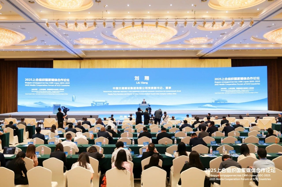 5月23日,以“共建美好家园 共创繁荣未来”为主题的2025上合组织国家媒体合作论坛在新疆维吾尔自治区乌鲁木齐市举行。来自上海合作组织成员国、观察员国和对话伙伴共26个国家的300余位主流媒体代表、有关部门负责同志、专家学者和企业代表等齐聚一堂、共商合作。新疆维吾尔自治区党委书记马兴瑞、人民日报社社长于绍良、上合组织副秘书长索海尔·汗致辞,自治区党委副书记、自治区主席艾尔肯·吐尼亚孜作推介。中交集团党委副书记刘翔出席会议并作主旨发言。