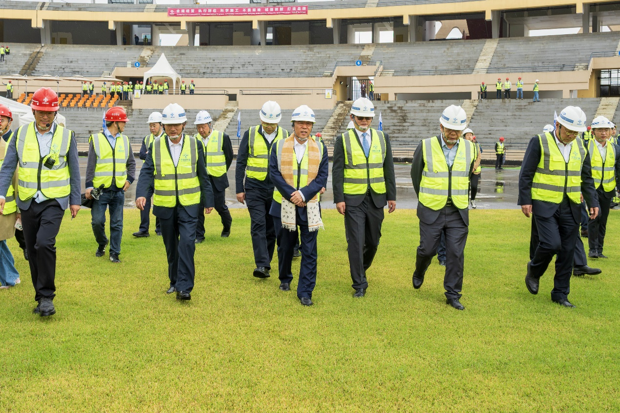 宋海良一行深入项目现场,了解了大圆厅项目大跨度钢结构、超大尺寸玻璃幕墙、钛板幕墙及智能建筑系统,100套房项目中埃塞文化融合设计、智慧系统应用及绿色建造工艺,国家体育场项目整体规划与施工进展,中埃塞友谊公园呈现的绿色发展理念,未来城项目功能布局与城市更新理念。在各项目现场,宋海良详细听取了项目负责人关于关键技术攻关、安全质量管控、工期保障措施及属地化融合等方面的汇报,对各项目团队在攻克复杂技术难题、践行绿色发展理念、推动数智化建造等方面取得的突破给予充分肯定。他指出,海外工程必须坚持战略引领与系统思维并重,要推动项目全生命周期价值创造,把每个工程打造成共建“一带一路”高质量发展的典范工程、友谊工程。