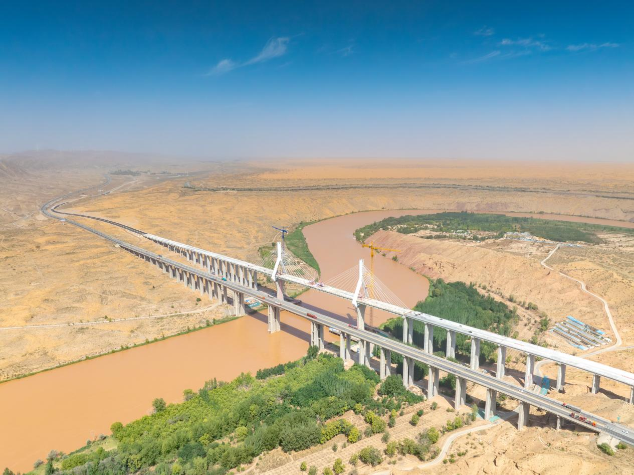 近日,二航局承建的宁夏黑山峡黄河大桥合龙。该桥位于宁夏中卫市沙坡头区,是国道338线中卫至孟家湾段公路项目的重要控制性工程,全长1539米,采用双向四车道一级公路建设标准,设计时速为80公里,主桥为双塔双索面半漂浮体系斜拉桥,主跨240米,主塔为倒“Y”字混凝土钻石型索塔,塔高145米。该项目建成后,将有效缓解既有国道338线通行压力,进一步完善西北区域公路网络,促进黄河流域生态保护和高质量发展。