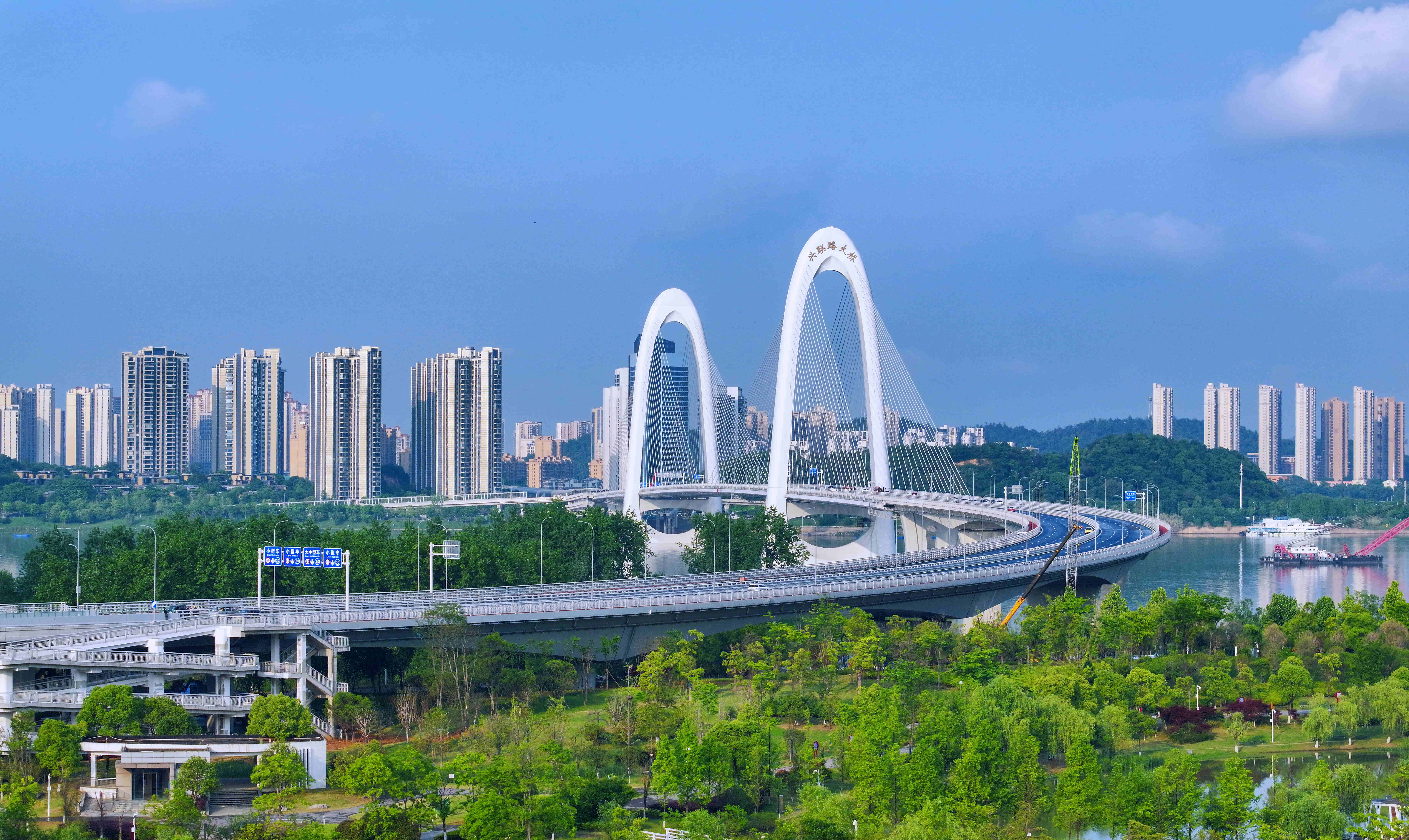 近日,一公局集团承建的湖南长沙兴联路大桥通车。该大桥全长5.48公里,桥面宽度38.5米,桥梁主跨380米,双向8车道,是长沙现有桥长最长、桥面最宽、单跨最大的过江大桥。大桥通车后,有效缓解北二环过江通道交通压力,成为益阳、常德等城市进入长沙的重要通道之一。