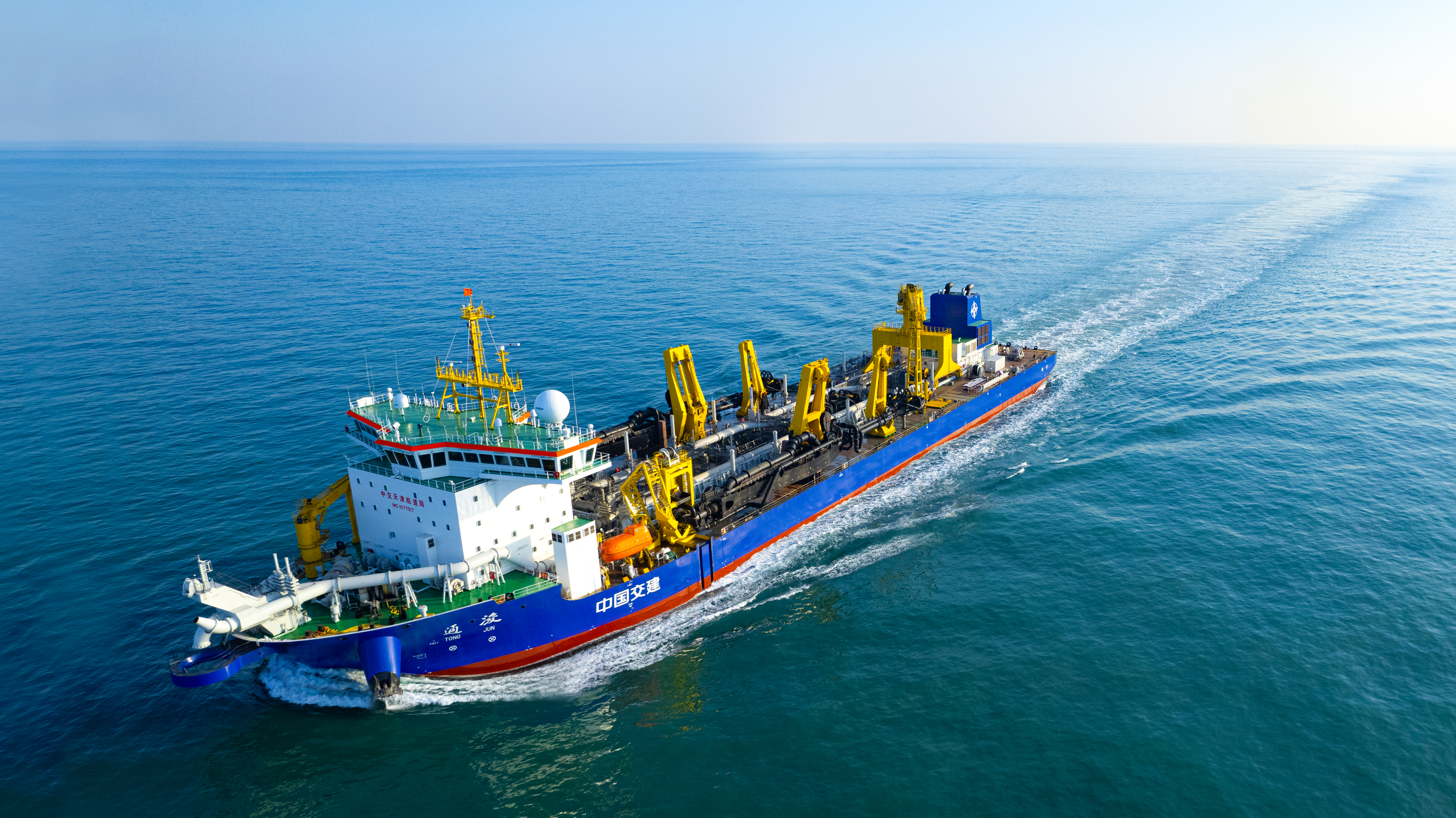 近日,中交集团自主设计建造的新一代超大型耙吸挖泥船“通浚”轮海试成功。“通浚”轮是我国首艘自主设计建造的35000立方米舱容等级超大型耙吸挖泥船,也是全球首批获得国际海事组织智能疏浚船级符号的船舶,最大舱容达38168立方米,位列亚洲第一、世界第二。本次海试先后完成航行推进系统、疏浚挖泥系统、智能控制系统等试验,全面检验了“通浚”轮的航行性能、作业效能和智能化水平,为我国海洋工程装备升级、拓展蓝色经济空间奠定了坚实基础。